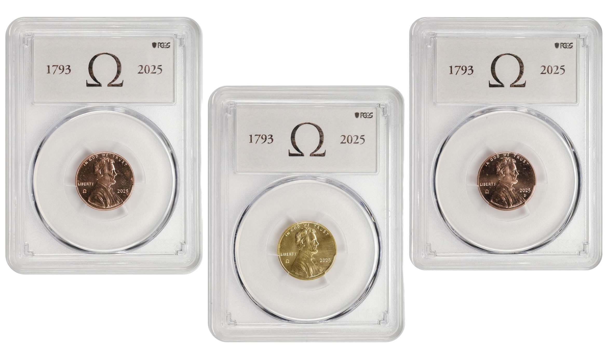Each Omega set contained a 2025 penny struck at the Philadelphia Mint, a 2025-D penny from the Denver Mint, and a 99.99% 24-karat gold uncirculated cent, the first gold cent produced by the Mint. All coins feature a small Omega privy mark, representing the final chapter of the penny’s long journey, which began in the 1790s. The 232 sets correspond to each year of penny production and stand among the lowest-mintage offerings in the history of the Lincoln cent series.
