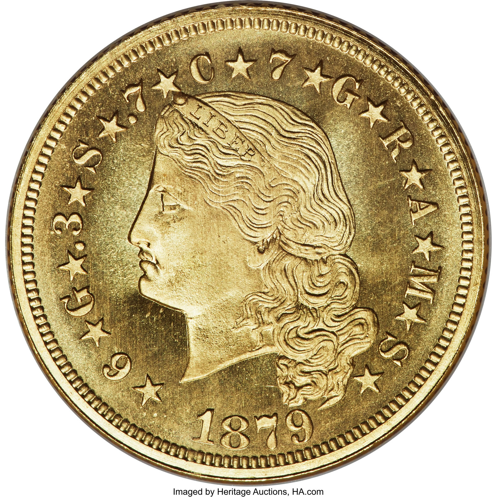 Also in play is an 1879 Flowing Hair Stella, Judd-1635 PR67★ NGC that is among the finest known examples. The 1879 Flowing Hair is the most plentiful of the gold stella patterns, but examples as fine as the Costa specimen are as rare as any of the other lower-mintage variants.