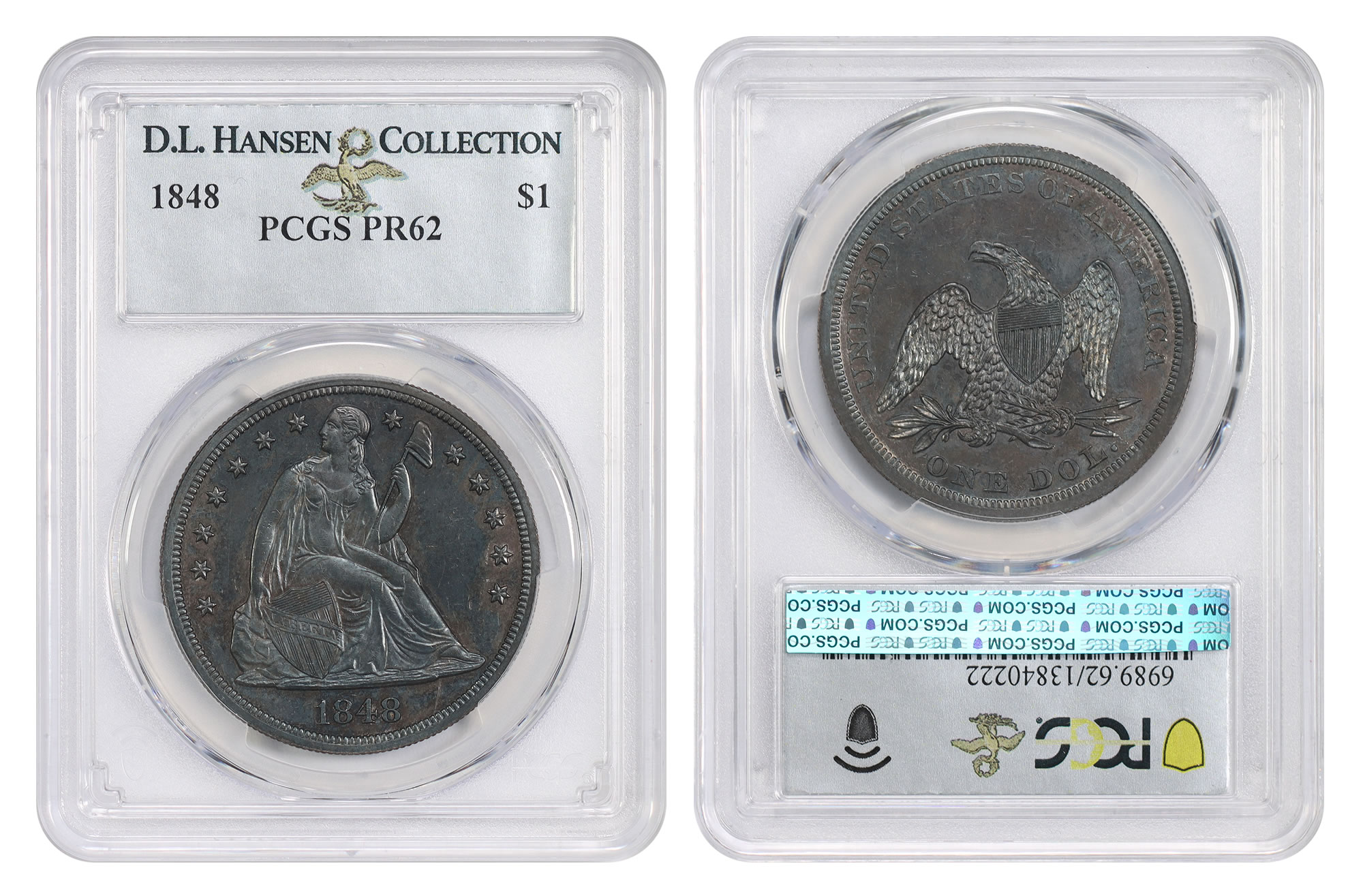 At the recent FUN Show in Orlando, Florida, Mr. Dore was rewarded with the bounty as DLRC successfully acquired the 1848 Seated Dollar, graded by PCGS as Proof 62. The coin now resides proudly in the D.L. Hansen Collection, and Mr. Dore traveled home with an additional $5,000!