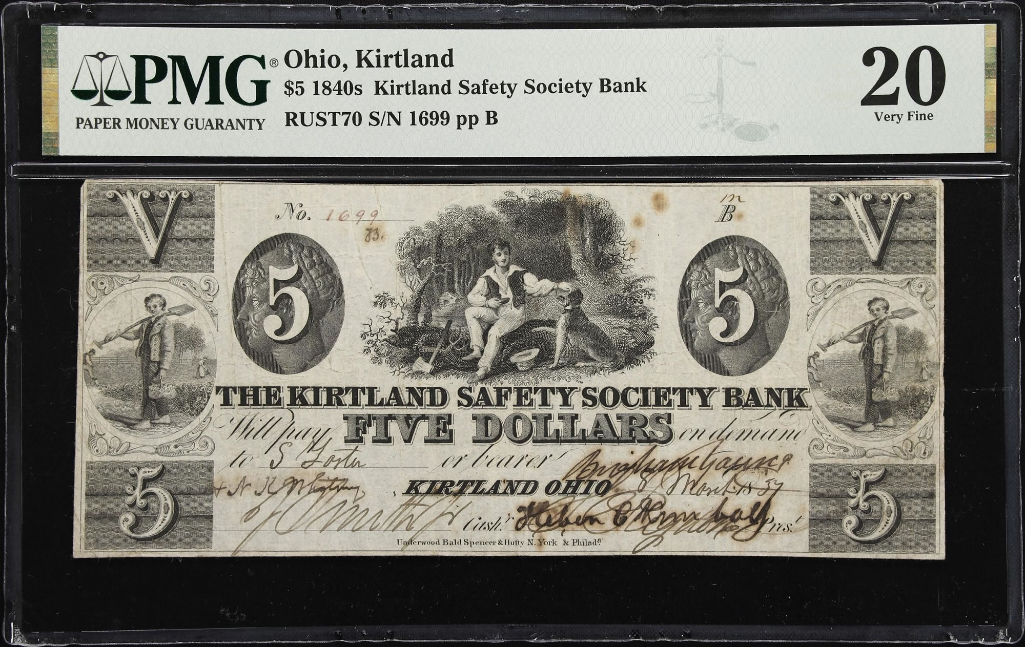Also featured is a $5 note from the Kirtland Safety Society Bank (Lot 5184), originally issued in Ohio and later countersigned and reissued in Utah during the late 1840s.