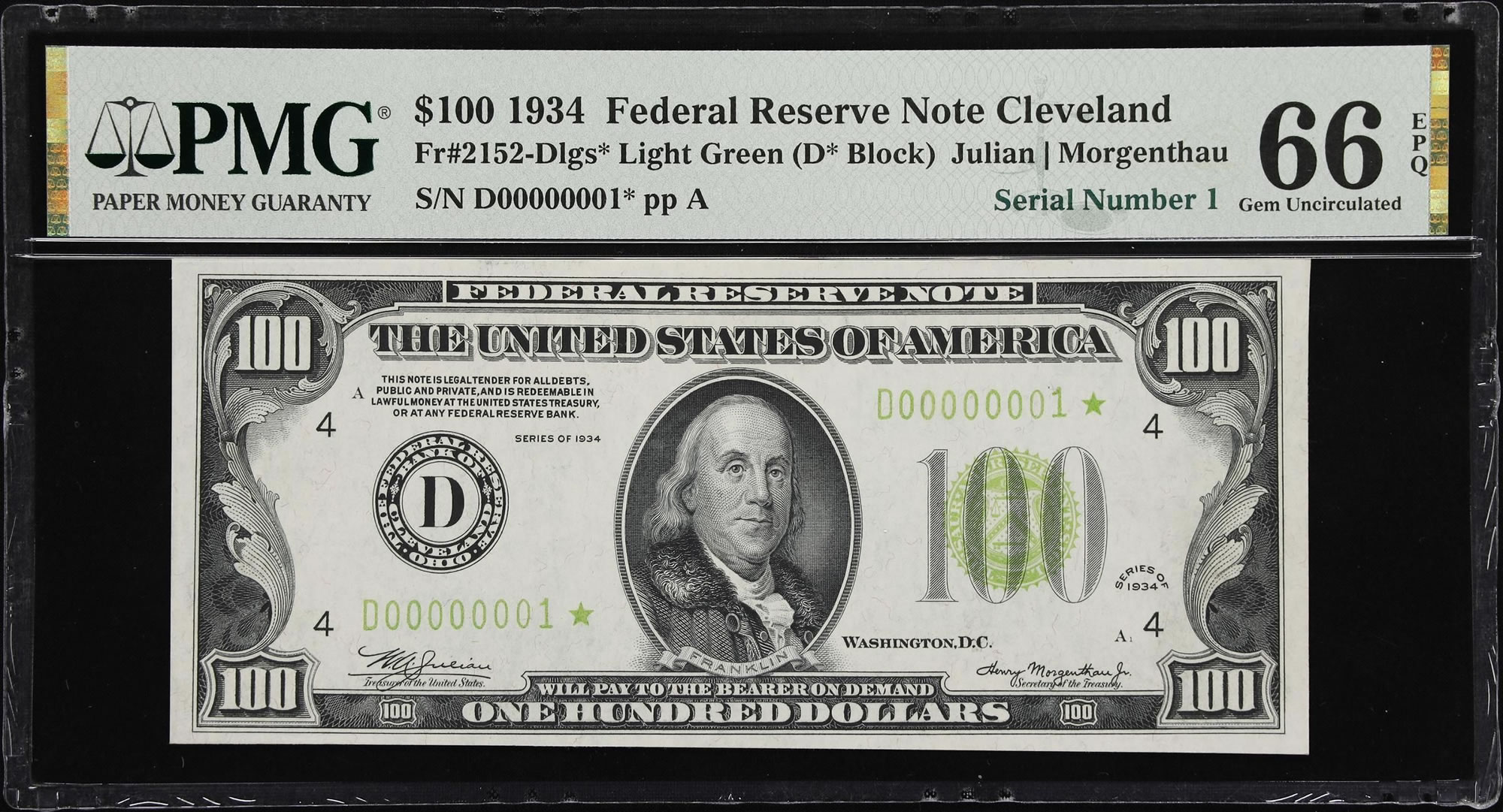 Another highlight is a Serial Number 1 replacement $100 Federal Reserve Note (Lot 7028), previously part of the John Whitney Walter Collection sold in 2004.