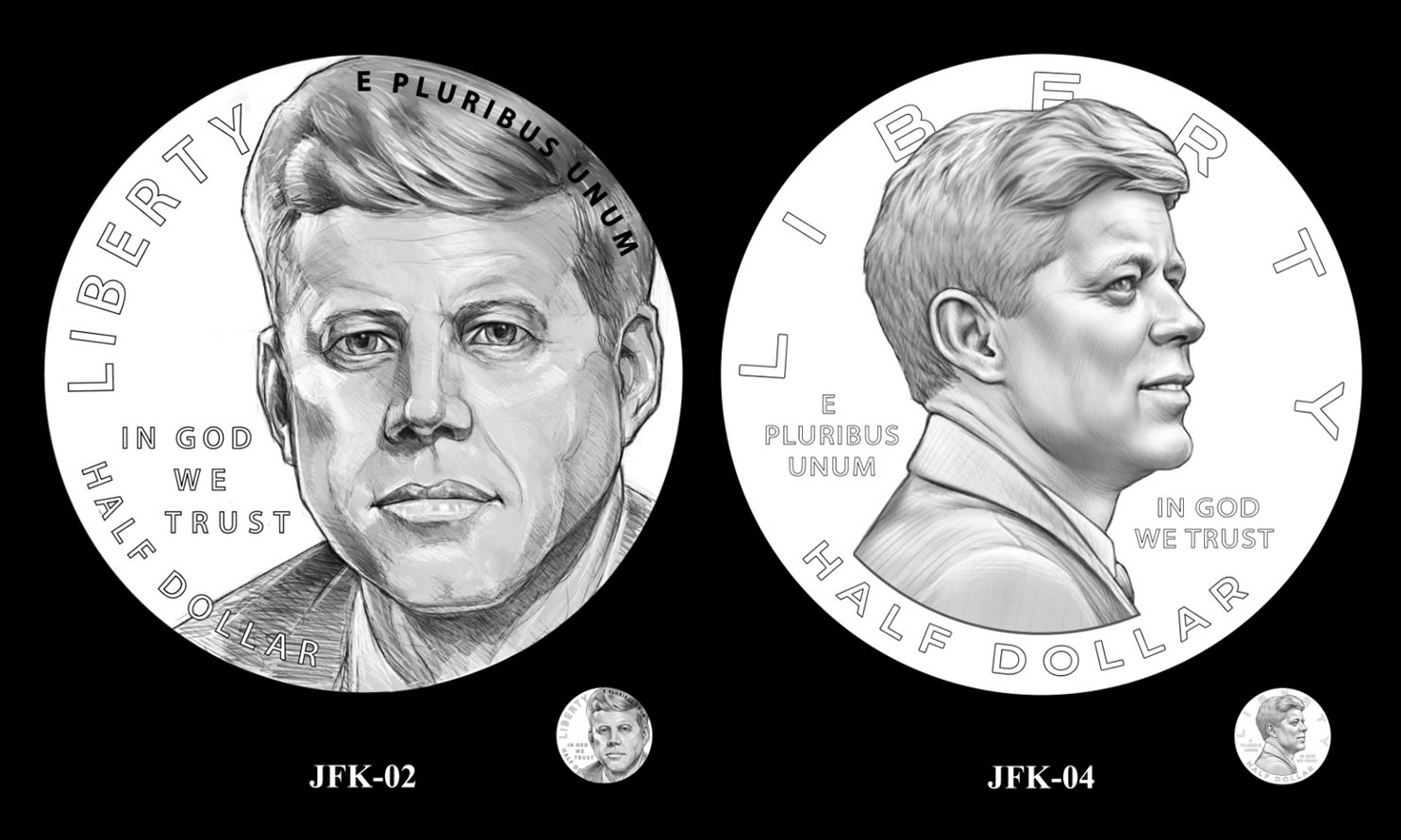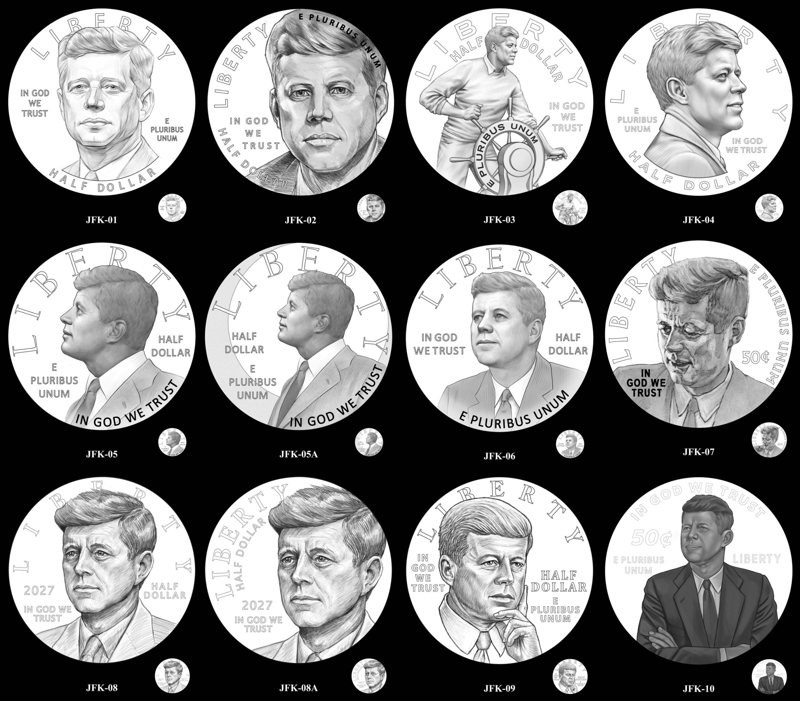 The U.S. Mint presented 12 obverse candidates, and the two panels split: the CCAC backed candidate #2, while the CFA said the original Kennedy portrait is superior to the new proposals but, among the new options, preferred candidate #4 with Kennedy shown at a slightly older age.