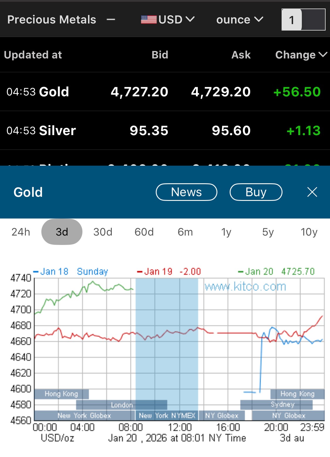 Silver, Gold, Platinum & Palladium Prices