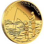 The Land Down Under The reverse of the coin depicts a fisherman reeling in his catch from a rock platform in colour, framed within the shape of Australia. Learn More » |